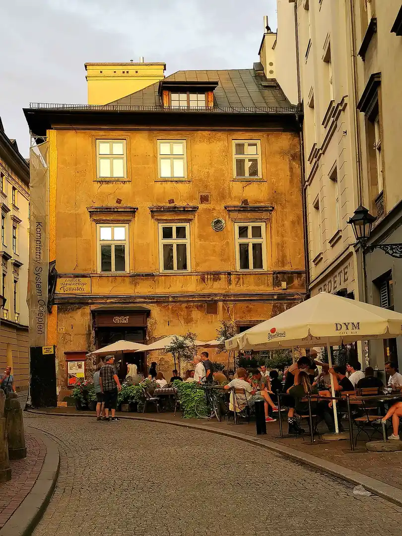 As you pass by this charming church, continuing along Tomasza Street as it twists and turns, you’ll soon stumble upon one of Krakow’s most iconic coffee houses: Camelot Cafe. This legendary café has a history as rich as its desserts. In the early twentieth century, Camelot was home to a brothel that was fondly remembered by Krakow’s artists and creatives. Later, as the building fell into disrepair, its evocative interiors became the set for Polish films, including the beloved 1960s classic Awantura o Basię (Argument About Basia). The spirit of rebellion and creativity seems to have never left this place, and today, it remains a cultural hub where Krakow’s past and present merge seamlessly.